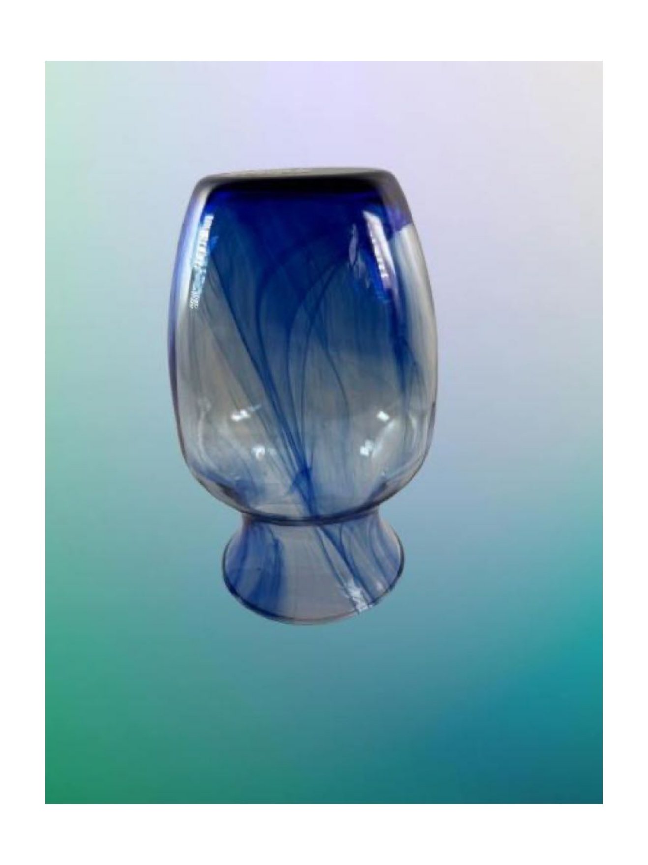 Indiana cobalt blue swirl hand-blown glass vase, 8 inches tall and 4 inches rim,