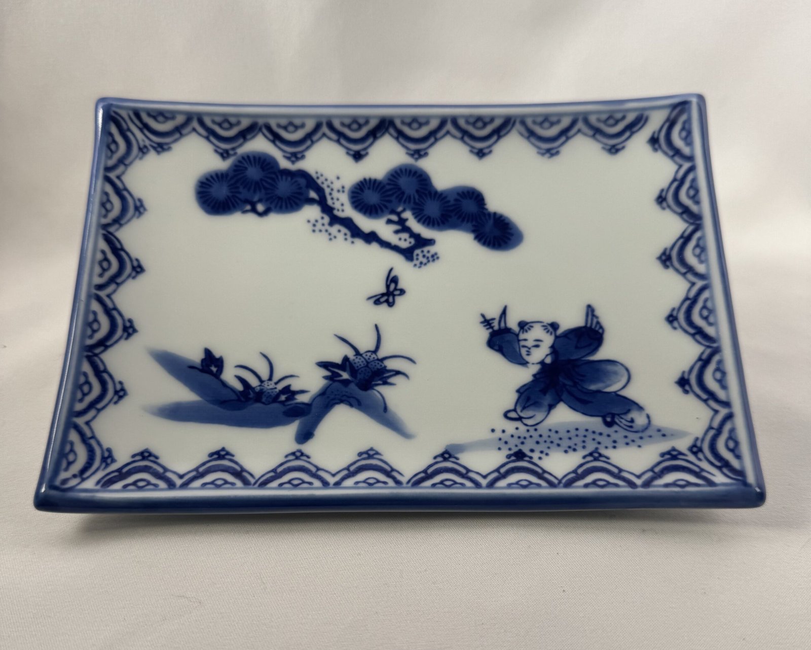 Vintage Blue and White porcelain sashimi/ sushi trinket, or is fantastic as a decorative plate dim 6′ 4′ pre -owned