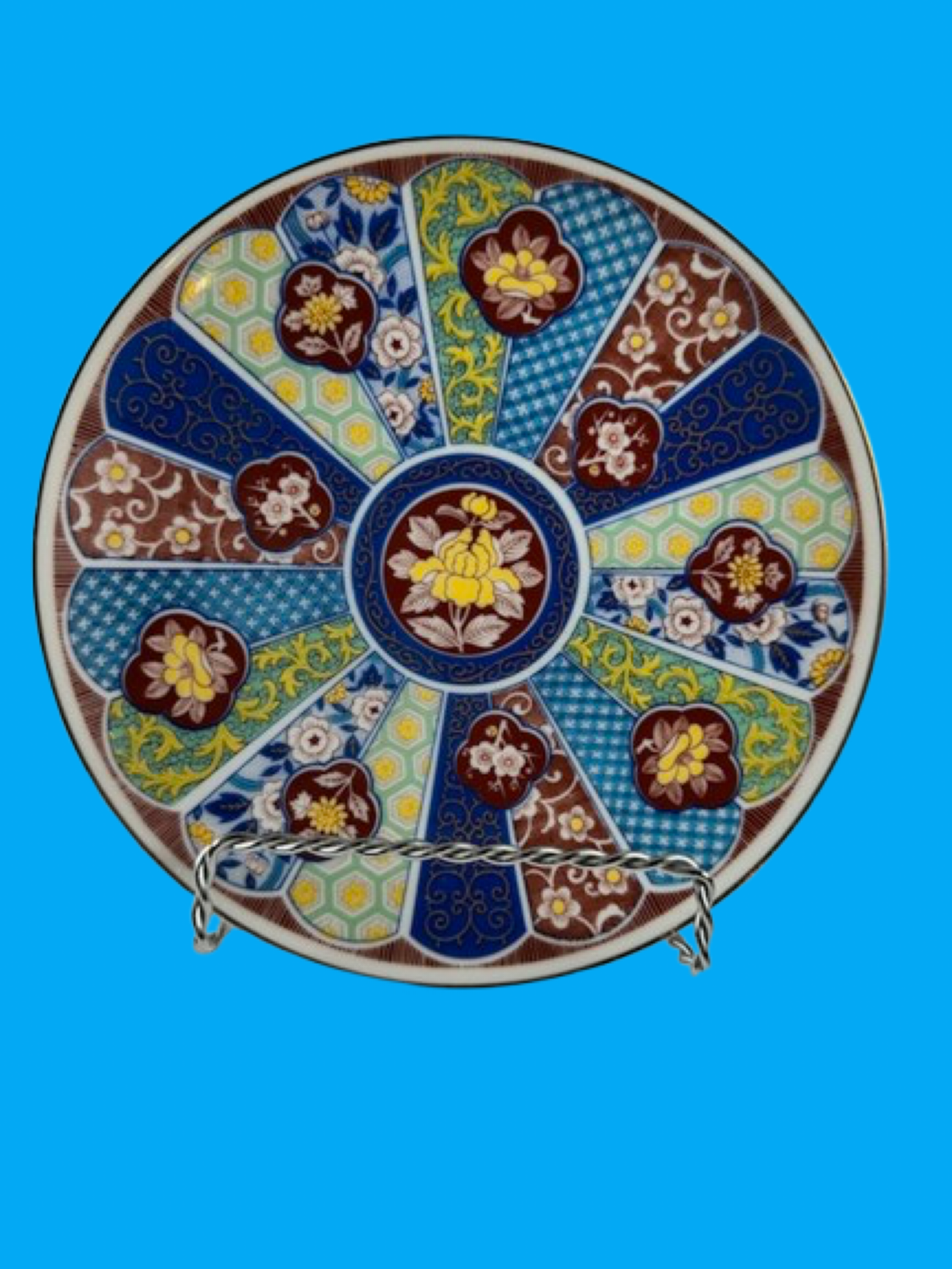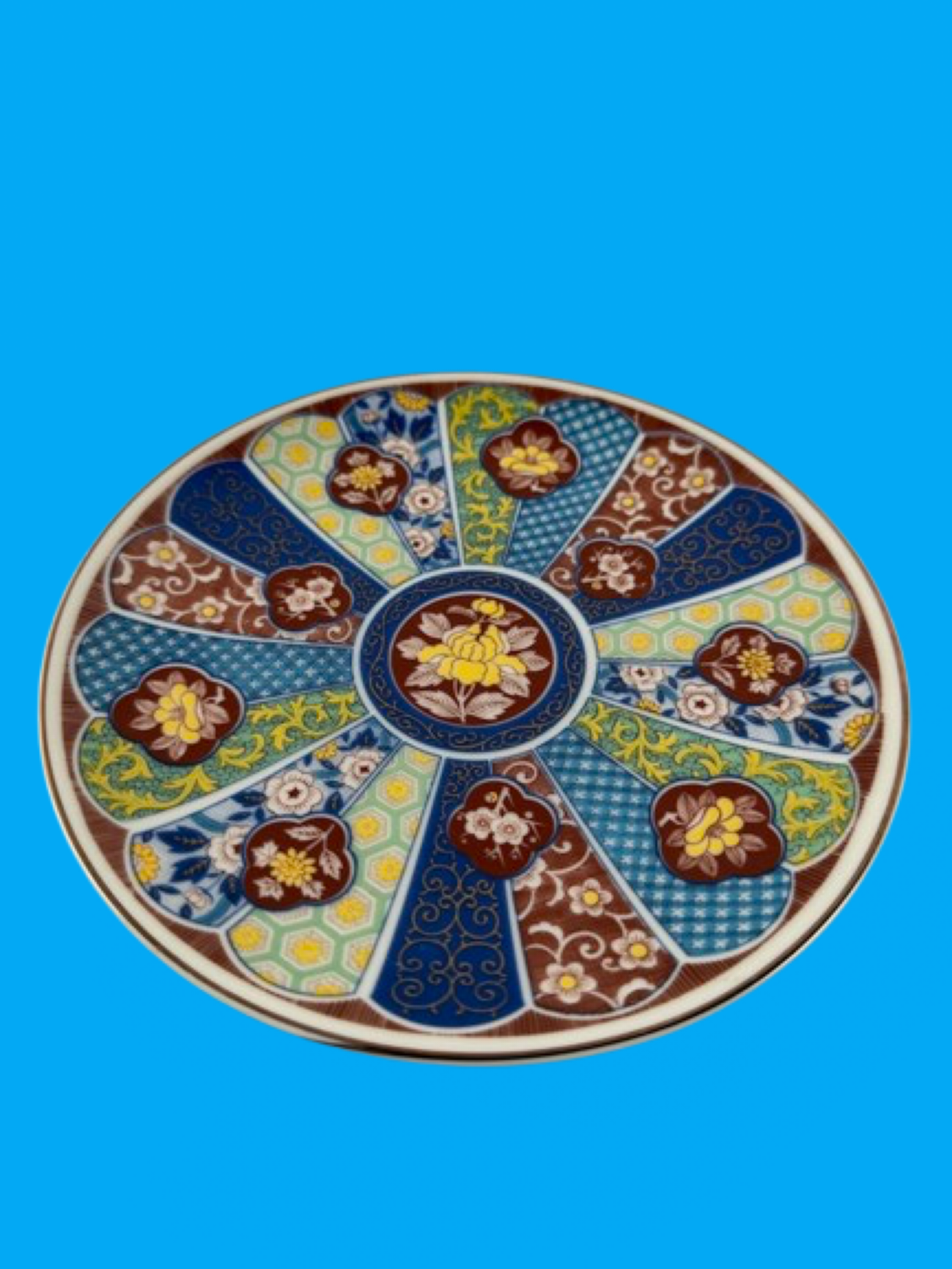 Vintage Japanese Imari decorative wall plaque featuring a floral pattern.